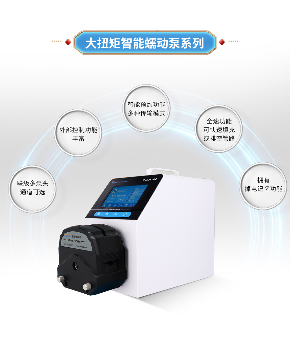 ◆觸摸屏蠕動泵具有流量(傳輸)模式、定時定速、定量定速工作模式。