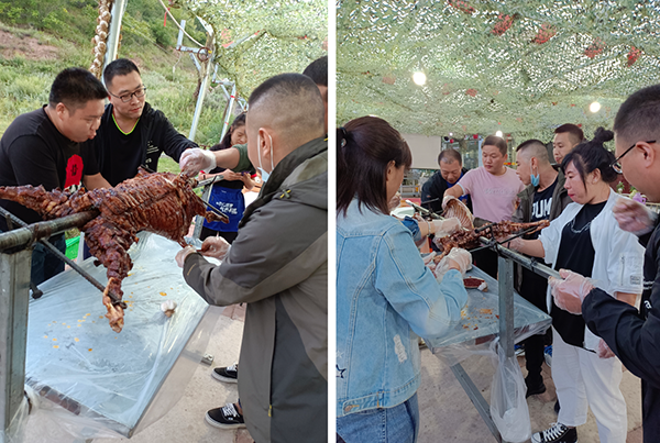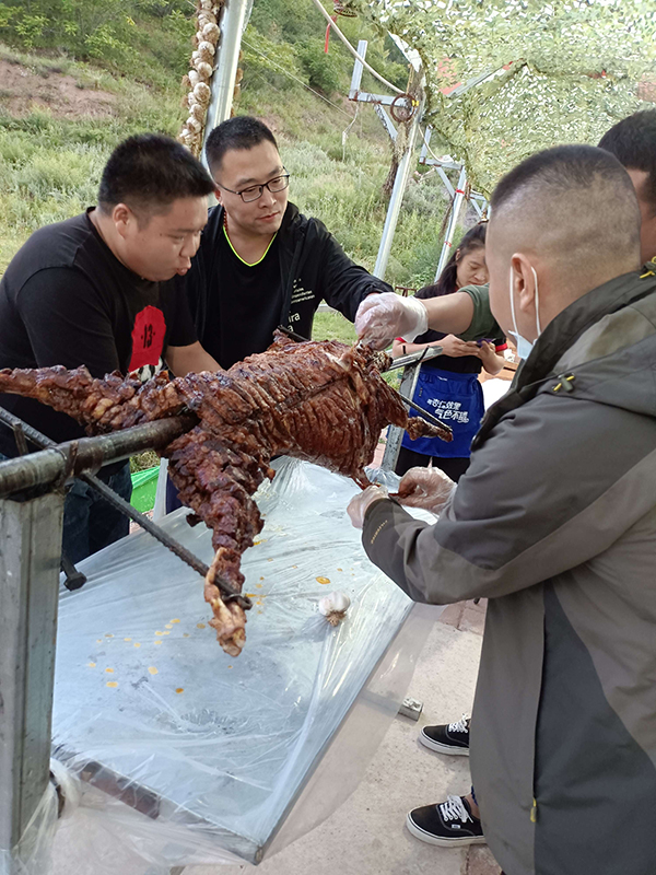 一天的行程,大家在歡聲笑語中結(jié)束了。大家的肚子也咕咕叫了,別著急還有更精彩的,公司還為大家準備了正宗烤全羊。大家一起舉杯祝愿公司發(fā)展越來越好,再創(chuàng)佳績!