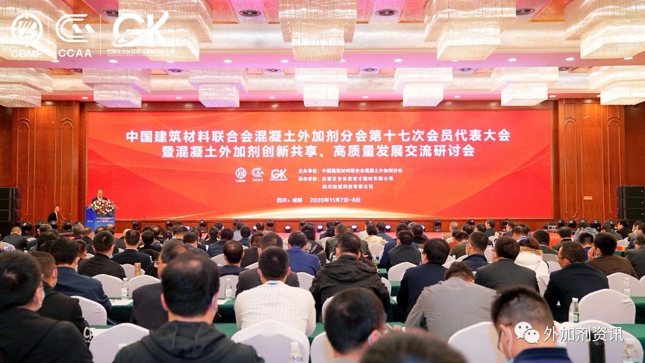 2020年11月7日上午,中國(guó)建材聯(lián)合會(huì)混凝土外加劑分會(huì)第十七次會(huì)員代表大會(huì)在美麗蓉城——成都盛大開幕,會(huì)場(chǎng)內(nèi)座無(wú)虛席,氣氛隆重而熱烈。