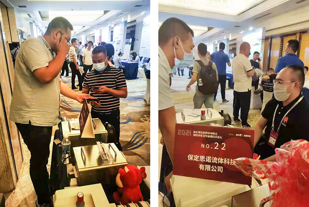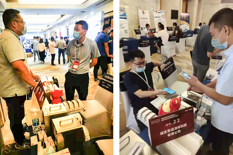 2021年初,原油一路猛漲,導致EO、聚醚、丙烯酸等減水劑關聯原料價格漲幅明顯,減水劑企業高成本承壓運行;此次展會為各大減水劑企業帶來希望和新生,也為蠕動泵行業市場打開了一片光明。眾多參會人員來到22號展位了解思諾蠕動泵相關信息,由表及里,如何應用,如何維護,我們的銷售經理都一一作答,思諾團隊受到所有前來駐足的客商的一致好評,也知道了思諾蠕動泵產品擁有高性能、高質量和易清潔易維護等特點,思諾還為減水劑行業各類應用需求提供優解決方案。現場眾多意向客戶添加微信,互換名信片;待著期望而來,攜帶滿意而歸。