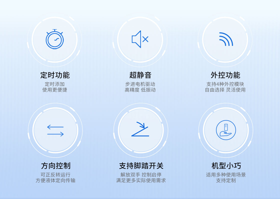 定時功能:定時范圍0.1S-99Hr 步進電機驅動,128倍細分,低振動 考究的工業設計,外觀時尚、小巧,做工精細